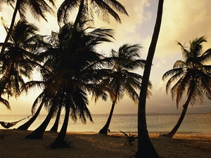 viewes, Great Sunsets, lake, Mountains, branches, trees