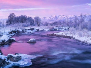 trees, autumn, Spruces, Larches, viewes, Mountain Lake