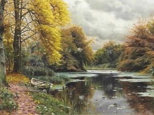 fallen, Leaf, forest, lake, Autumn