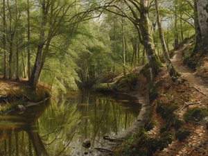 Leaf, trees, Way, viewes, autumn, rays of the Sun, wall