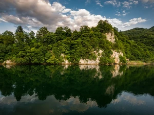 viewes, snow, Yellowed, trees, winter, green ones, Leaf