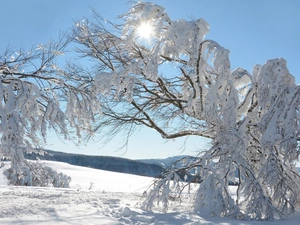 ligh, shed, trees, flash, viewes, forest, bench, luminosity, sun, Przebijające