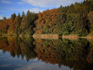 rays of the Sun, autumn, Way, trees, Leaf, light breaking through sky, forest, viewes