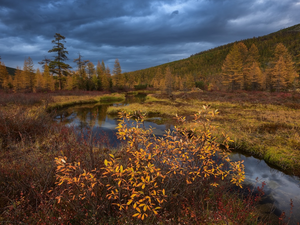 Lod on the beach, trees, west, viewes, forest, Sky, sun