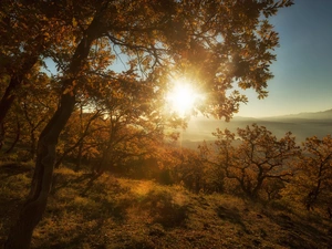 Mountains, Sky, Bush, Meadow