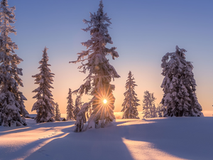 car in the meadow, trees, California, The United States, Sequoia National Park, viewes
