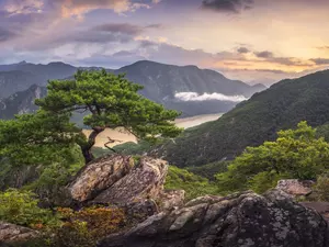 Val Gardena Valley, Seiser Alm Meadow, Dolomites, Sassolungo Mountains, clouds, Italy, trees, viewes, Houses