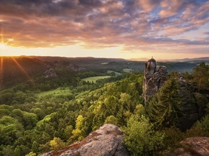 viewes, Mountains, lake, trees, Islet