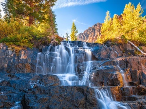 Mountains, trees, clouds, viewes, forest, Fog, light breaking through sky