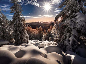 viewes, winter, lakes, Mountains, forest, trees