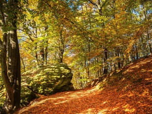 Bench, Mountains, viewes, forest, trees