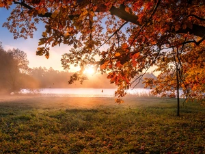 Washington State, The United States, Mount Rainier National Park, Mountains, viewes, Fog, Flowers, trees, Meadow