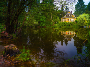 fallen, trees, Pond - car, viewes, autumn, Leaf, Park