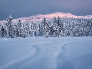Děčínská vrchovina, Sunrise, pine, rocks, viewes, Saxon Switzerland National Park, Germany, trees