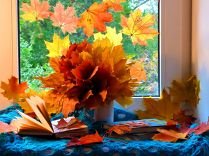 Park, autumn, fallen, Leaf, bench, lanterns, trees, viewes, Way