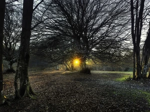 viewes, forest, illuminated, Path, Path, trees