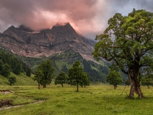 Stones, Great Sunsets, pine, VEGETATION, Mountains