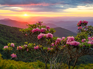 flourishing, Flowers, viewes, Pink, Spring, trees, River