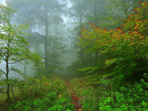 Fog, Plants, trees, viewes, forest