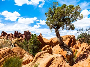 trees, autumn, Yellow, Pond - car, viewes, grass