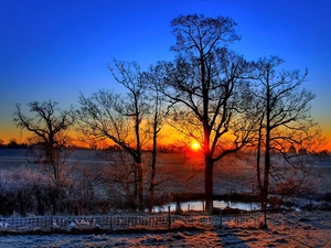 trees, forest, viewes, Floodlit, house, Province of British Columbia, Mountains, Yoho National Park, Canada, bridge, Emerald Lake, lake