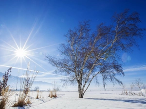 trees, Pond - car, forest, Snowy, winter, viewes, reflection