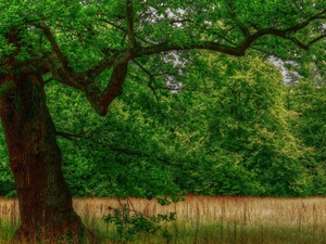 woods, trees, clouds, viewes, Bush, Mountains, lake, reflection