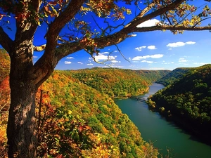 inclined, autumn, viewes, reflection, trees, River