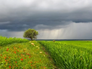 rain, rhododendron, Flowers, drops, purple