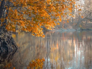 viewes, rocks, autumn, waterfall, bridge, trees, forest, River