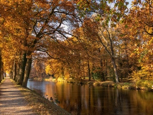 River, autumn, viewes, rays of the Sun, trees, forest