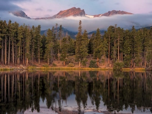 viewes, Mountains, trees, Rocks, Yellowed, trees