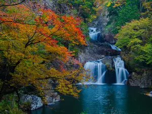 River, autumn, viewes, rocks, trees, waterfall