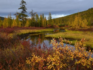 trees, forest, mountains, Snowy, winter, viewes, Sunrise