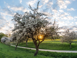 trees, Pond - car, Flowers, fountain, Park, viewes, Spring