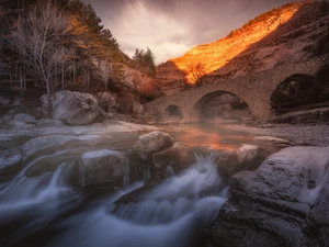 Snowy, Mountains, viewes, Spruces, trees, winter