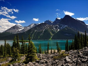 trees, autumn, birch, Stones, viewes, The Hills