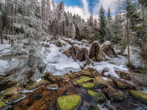trees, autumn, Rocks, Stones, viewes, waterfall