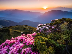 Pink, Flowers, luminosity, ligh, flash, fruit, trees, sun