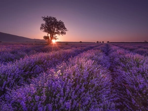 boulders, Przebijające, luminosity, ligh, flash, Spruces, Mountains, sun