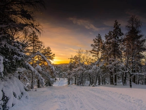 west, lake, trees, sun