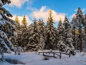 woods, trees, Mountains, viewes, rocks, The Hills, Sunrise