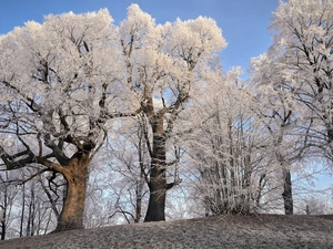 trees, Flowers, clouds, rape, Field, viewes, Great Sunsets
