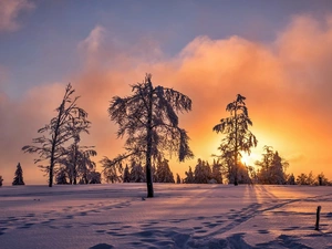 lake, forest, Great Sunsets