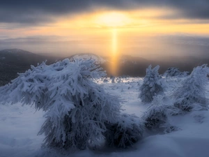 State of Alaska, The United States, Butte, Meadow, viewes, Rays of Sun flowers, clouds, trees, Great Sunsets