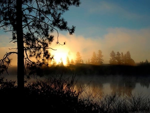 trees, grass, Meadow, clouds, summer, viewes, Great Sunsets