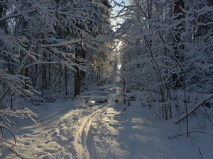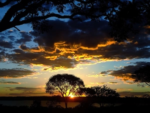 viewes, forest, clouds, trees, Mountains, Great Sunsets, rays of the Sun