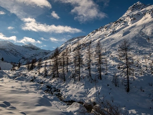 trees, sea, Great Sunsets