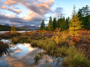 clouds, heathers, viewes, Sky, heath, trees, Great Sunsets