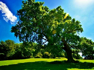 trees, viewes, Leaf, bench, Moss, forest, autumn, Table
